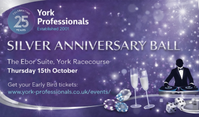 Join us to celebrate our Silver Anniversary at The York Professionals Silver Anniversary Ball on Thursday 15th October 2026 in the Ebor Suite at York Racecourse. We hope you will join us for this legendary social event which will help mark 25 years of representing the professional services sector in York as we raise a glass or two to celebrate with York's business economy.